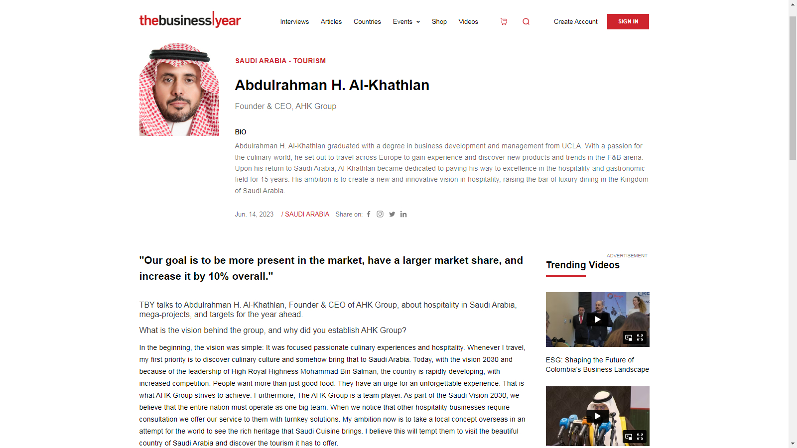in his interview with "the business year" Mr. Abdulrahman Alkhathlan (Founder and CEO of "AHK GROUP") explains the establishement of "AHK GROUP" as a pioneer and contributer to the elevation of Saudi hospitality’s and its development with a future view for the Mega and Giga projects that mushrooming in Saudi Arabia through Vision 2030.