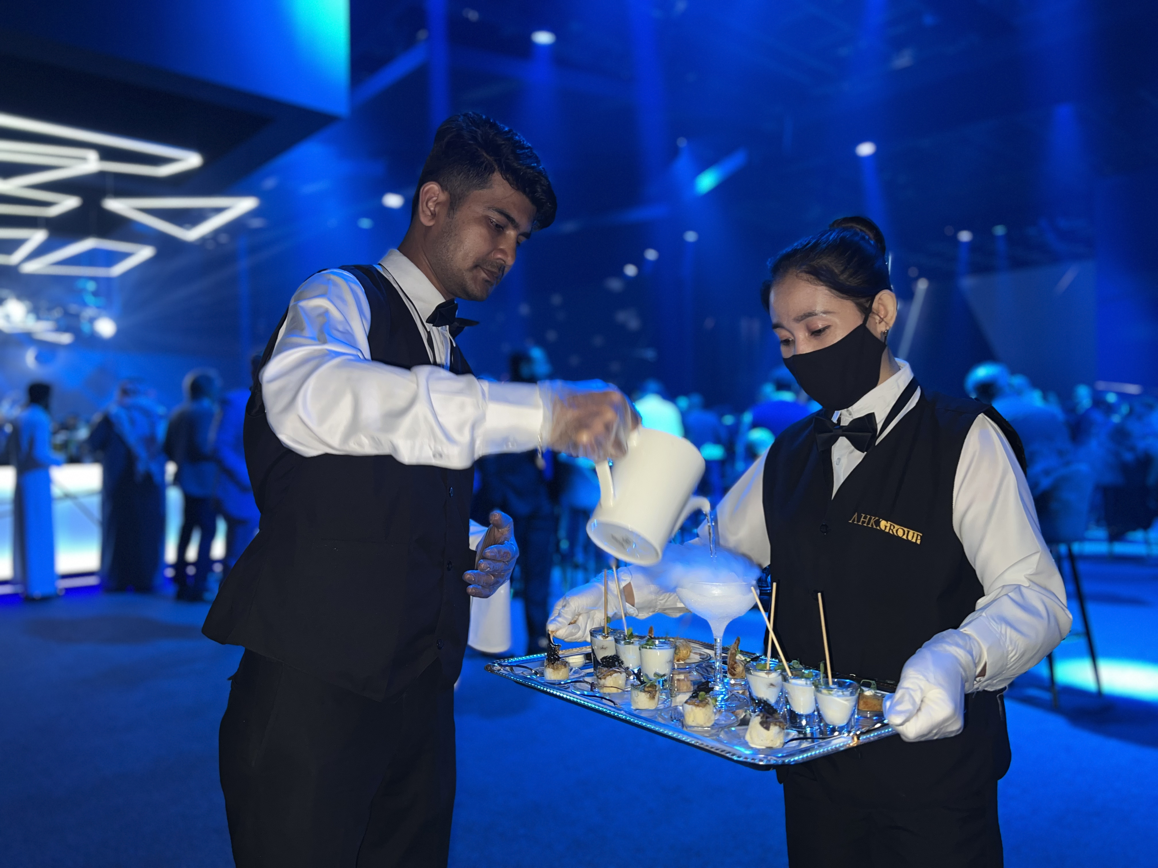 AHK Group has offered +20 catering requests for +4000 guests in soundstage 1 & 2, backstage catering for bands and crew, and NEOM remote areas (e.g. Bajdah studios, NEOM Experience Center), served by international specialty chefs for various high-end cuisines,